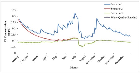 Simulation of the annual concentration change process of TP in Scenarios 1–3.