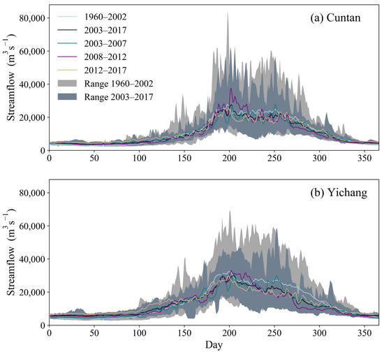 - Guo, S.; Xiong, L.; Zha, X.; Zeng, L.; Cheng, L. Impacts of the Three Gorges Dam on the streamflow fluctuations in the downstream region. J. Hydrol. 2021, 598, 126480. [Google Scholar] [CrossRef]