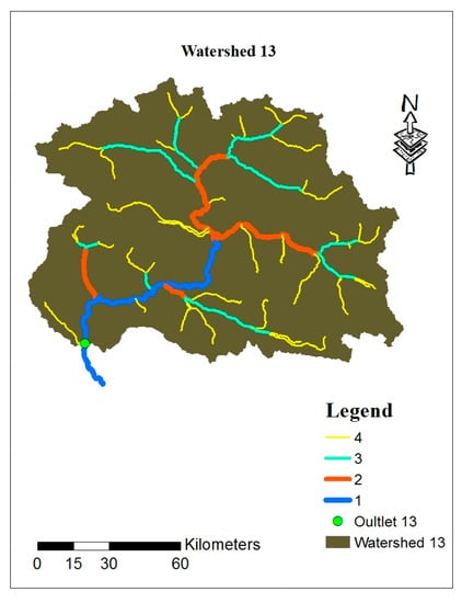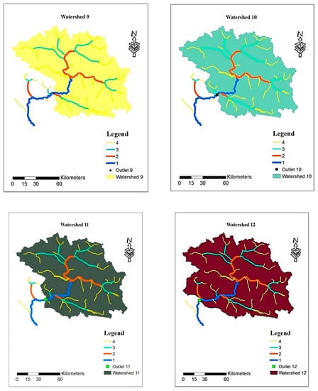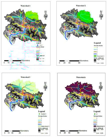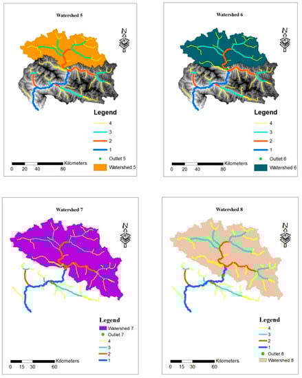 The catchment characteristics, including the watershed area of each site and CN, were calculated using GIS and CN-Tables to carry out the estimation of discharge with SCS-CN and AR methods. Figure 5 shows the watershed delineation from upstream to downstream using the arc hydro tool in GIS.