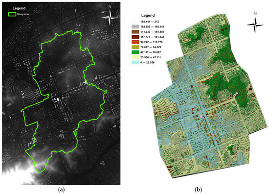 Topography data in study area: (a) 2 m × 2 m DEM; (b) TIN (Triangulated Irregular Network).