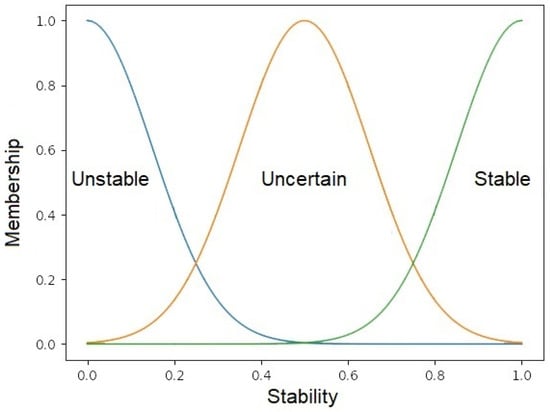- Membership Functions: For each input parameter, membership functions are defined to specify the degree of membership to different fuzzy sets. These fuzzy sets represent different stability categories, such as “unstable”, “uncertain”, or “stable”. The membership functions assign a value between 0 and 1 to each linguistic variable, representing the degree of membership to a particular fuzzy set.