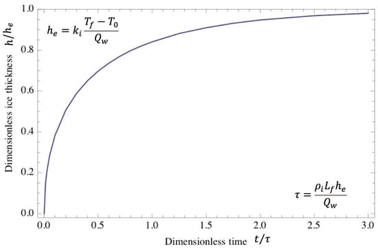 where is the equilibrium ice thickness, and is the time scale of ice growth. The solution is shown in Figure 2. When , the left-hand side is approximately and the ice grows in proportion to the square root of time with a minor influence from the heat flux from water. Furthermore, at .