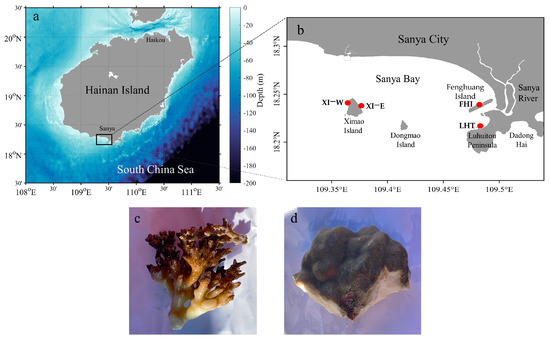 - Zhou, H.; Yao, X.; Li, L.; Geng, T.; Zhang, Y. Scleractinian coral community structure and distribution in the coastal waters surrounding Hainan Island. Biodivers. Sci. 2017, 25, 1123–1130. (In Chinese) [Google Scholar] [CrossRef]