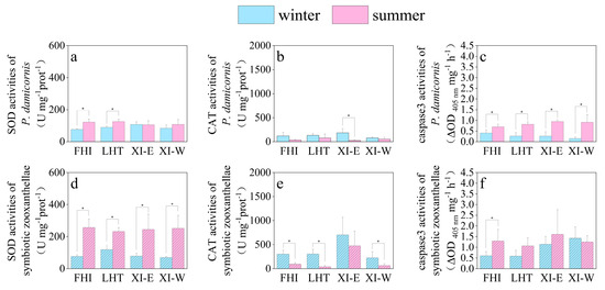 Yang, Z.; Wu, C.; Zhu, J.; Geng, X.; Liu, Y.; Zhang, Y.; Duan, W. Winter and Summer Variations in the Physiological Parameters of Two Scleractinian Corals in Sanya Bay. Water 2023, 15, 2954. https://doi.org/10.3390/w15162954