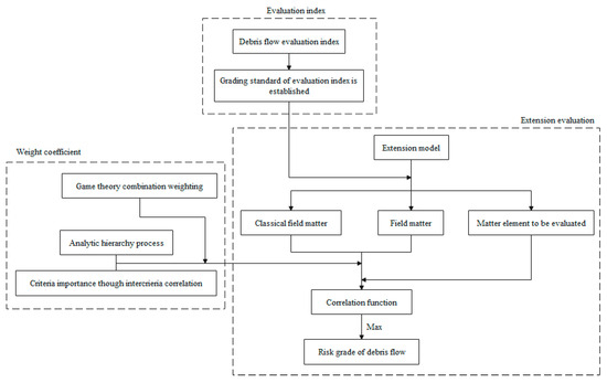 Li, H.; Bai, X.; Zhai, X.; Zhao, J.; Zhu, X.; Li, C.; Liu, K.; Wang, Q. Research on Extension Evaluation Method of Mudslide Hazard Based on Analytic Hierarchy Process–Criteria Importance through Intercriteria Correlation Combination Assignment of Game Theory Ideas. Water 2023, 15, 2961. https://doi.org/10.3390/w15162961