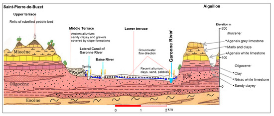 - Gandolfi, J.M.; Danneville, L.; Petit, V.; Tilloloy, F. Connaissance, Évaluation et Protection des Aquifères Alluviaux de Tarn-et-Garonne; 82, BRGM Report/R-39543; Bureau de Recherches Géologiques et Minières: Toulouse, France, 1997. [Google Scholar]