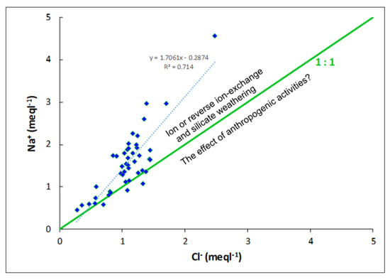 - Datta, P.S.; Tyagi, S.K. Major Ion Chemistry of Groundwater in Delhi Area: Chemical Weathering Processes and Groundwater Flow Regime. J. Geol. Soc. India 1996, 47, 179–188. [Google Scholar]
