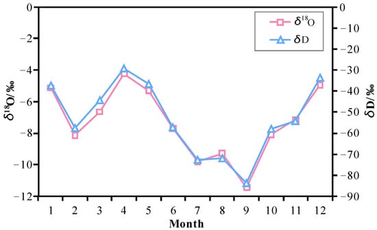 Variations of weighted mean values of δ18O and δD in Wuhan atmospheric precipitation by month.