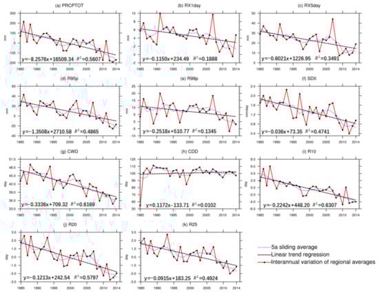 We introduced the Model Variability Index (MVI) [24] to assess the simulation results of multi-year changes in regional mean precipitation-model simulations. The MVI is defined as follows: