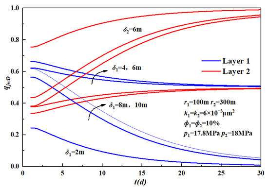Layer flow chart of two-layer gas reservoir with different layer thickness (δ).