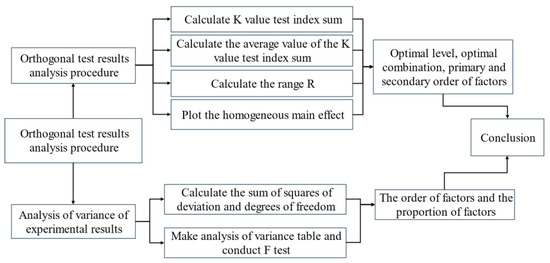 Subsequently, range analysis and analysis of variance were conducted on these results to determine the primary and secondary order of influencing factors, as well as the influence weight of the single-layer production contribution ratio under multiple influencing factors. The analytical process is illustrated in Figure 10.