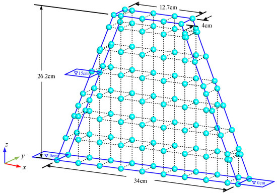 The laboratory test through a trapezoidal dam consists of the glass beads performed by Desai et al. [10] is shown in Figure 6. This isotropic dam is discretized by a 3D orthogonal network of line elements. The hydraulic parameters are given as kx = ky = kz = 0.1 cm/s and μ = 0.4. The water level at the left boundary gradually increases from 0 cm to 15 cm.