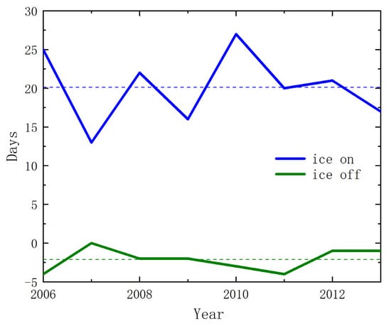 Nam Co is a saline lake, and the water salinity is about 1.5 g/L []. The freezing point temperature is about −0.08 °C with such a salinity (the National Snow and Ice Data Center (NSIDC) (http://nsidc.org/cryosphere/seaice/characteristics/brine_salinity.html, accessed on 20 July 2023)), which is very close to 0 °C. Thus, we still used 0 °C as the ice freezing point in this study.