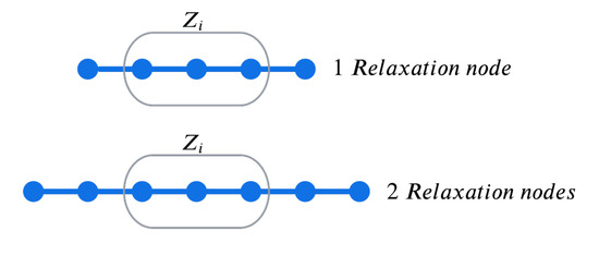 It should be noted that a large number of combinations can be obtained, which, in turn, results in a complex problem to analyze. To face this issue, the n nodes of the WDN are arranged in p number of zones. Each zone is created with a predefined number of adjacent nodes with a minimum of two nodes; that is, . Notice that a two-simultaneous-leak case can occur in two different situations: (a) in two different zones and (b) in the same zone (since a zone is formed with at least two nodes). Now, considering the zones with , a new set of zone classes can be generated as follows: