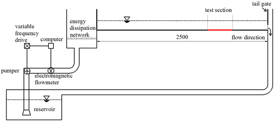 Experiment flume system (unit: cm; 1 cm = 0.01 m).