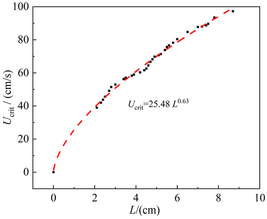 Critical velocity tests were conducted on juvenile Grass Carp with body lengths ranging from 2 cm to 8 cm. The relationship between the critical velocity and the body length of the juvenile Grass Carp is shown in Figure 12. The percentage of error of the experiment was 5%, and the standard deviation was 1.8%.