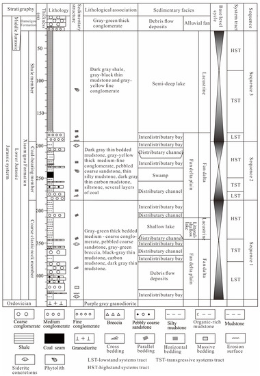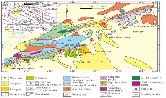 - Liu, B.Q.; Zhu, K.J.; Huang, X.H.; Chen, L.; Liu, D.C.; Shao, L.Y. Sequence stratigraphy and lithofacies paleogeography of the Lower Jurassic in southern Altyn Tagh, western Qaidam Basin. Acta Sedimentol. Sin. 2019, 37, 356–370. [Google Scholar]