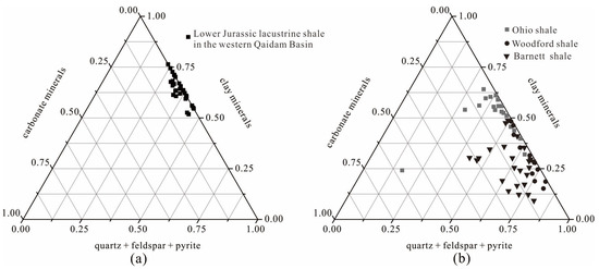 - Kang, Z.H.; Zhou, L.; Ren, S.M.; Kong, J.S.; Chen, Y. Characteristics of shale of the 7th member of the Middle Jurassic Dameigou Formation in Northern Qaidam Basin. Earth Sci. Front. 2015, 22, 265–276. [Google Scholar]