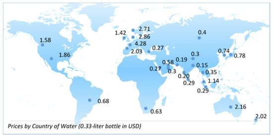 Therefore, it is essential to consider all the possible factors in water valuation processes in terms of the economic and environmental bases [28]. The pricing mechanism plays a crucial role in determining water use patterns and influencing customer behavior with regards to water consumption. The prevailing cost per unit of water in numerous countries is relatively low, which implies that water is undervalued in comparison to other commodities. Figure 3 illustrates the price of a water bottle (0.33l) in different parts of the globe. Despite being among the countries with the lowest water prices globally, China and India emerge as the primary consumers, collectively accounting for half of the total water consumption out of highest water-consuming countries globally [29]. Table 1 shows the detailed list of the highest water-consuming countries [29]. The provision of water at lower prices by densely populated and water-intensive countries may provide evidence for a probable cause of increased global water wastage.