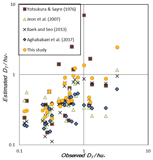 The comparison between the observed dispersion coefficient and the derived equation is illustrated in Figure 5.