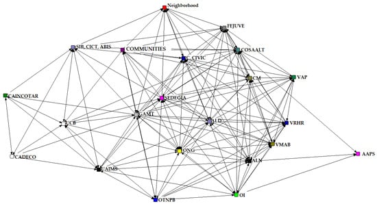 Prell et al. [74], Borgatti et al. [75], and León [57] explain very clearly that analysis of social networks requires qualitative analysis to be performed concordantly with quantitative analysis; in addition, it is a method that studies the “relationships” that exist between actors to analyze their position within the network and to draw conclusions that are useful for the objectives of the study. There are several tools for the construction of networks. UCINET© [57] is a program that enables adequate construction of networks based on the levels of communication between interested parties.