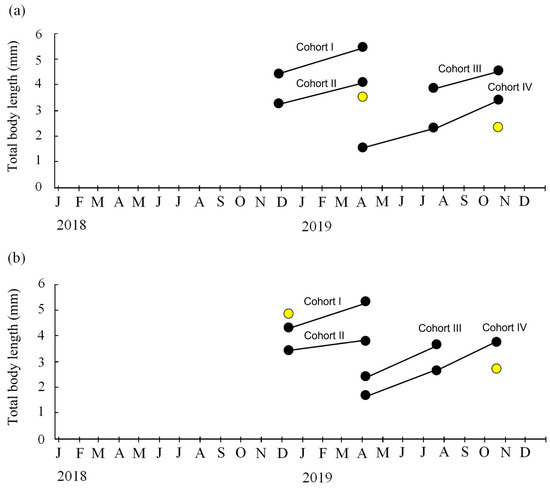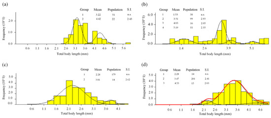 | Asymptotic length (L∞) (mm) | 6.30 | 5.40 | 4.40 | 7.20 | 4.00 | 6.60 |