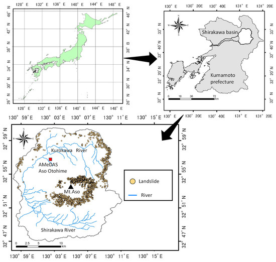 - Miyabuchi, Y. Landslides Triggered by the July 2012 Torrential Rain in Aso Caldera, Southwestern Japan. J. Geogr. (Chigaku Zasshi) 2012, 121, 1073–1080. [Google Scholar] [CrossRef][Green Version]