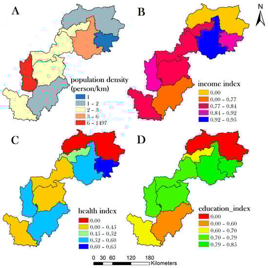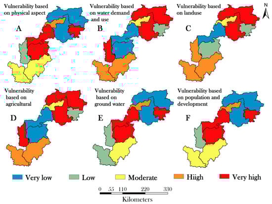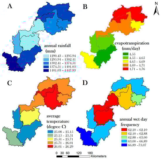 Annual rainfall: The relationship between drought and annual rainfall is negative, which means that, with falling rainfall at a given area, the vulnerability of drought will increase [40]. The average annual rainfall was determined by considering the amount of the cumulative monthly rainfall of each district (Table 2).