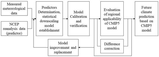 Prediction process of future climate change based on statistical downscaling and the CMIP5 model.