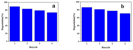 Photocatalyst reusability ((a) for IMA and (b) for FU-5).