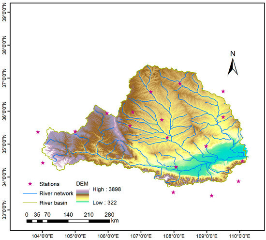 The historical climate data (i.e., Precipitation, Tmax, Tmean, and Tmin) for the Wei River basin can be obtained from China Meteorological Data Service Center (http://data.cma.cn/en, accessed on 30 September 2022).