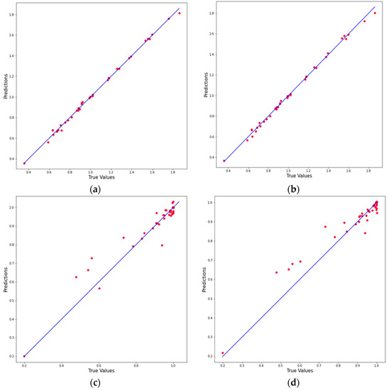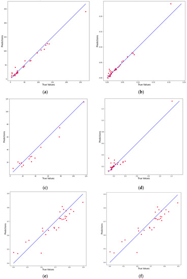 Figure 4 compares the models’ predicted results against actual values for all BEP attributes, for both dimensioned and dimensionless datasets. Firstly, flow results in