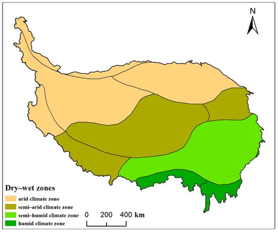 Overall, the drivers affecting vegetation changes in different dry–wet zones differed in the TP, and vegetation growth in arid and semi-arid climate zones was more sensitive to the response of precipitation and sunshine. For the humid and semi-humid climate zones, temperature and elevation have stronger influences on vegetation growth.
