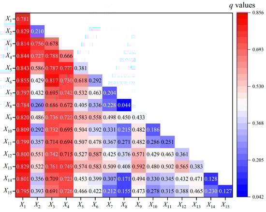 where h is the stratification of factors X1, …, Xn. Nh and N are the numbers of units in layer h and the whole area, respectively. σh2 and σ2 are the variances of the Y value of layer h and the whole area. q is the influence value of the factor and takes a range of [0–1]. A larger value of q indicates a stronger explanatory power of X on Y, while a smaller value of q has a weaker explanatory power.
