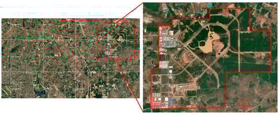 The design drawings and information for the study area were obtained from the Project Development Department (PDD), and according to the planning information, the total length of the rainwater pipe network exceeds 73 km in length, with a variety of types and sizes. However, the simulation results from the SWMM model developed from the initial design plan show that the rainwater pipe network currently planned has limited drainage capacity, and there are no LID measures planned and designed for this economic development area, which will be prone to flooding after completion. The study area is shown in Figure 3.