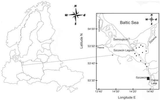 - Wolnomiejski, W.; Witek, Z. The Szczecin Lagoon Ecosystem: The Biotic Community of the Great Lagoon and Its Food Web Model, 1st ed.; Versita: London, UK, 2013; p. 293. [Google Scholar]
