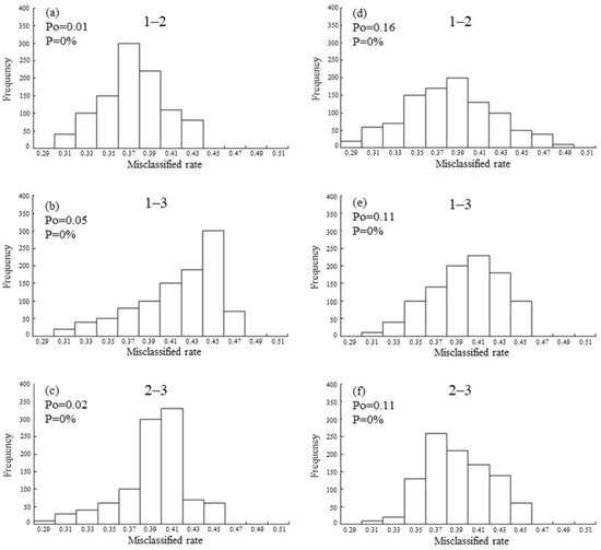 - Solow, A.R. A randomization test for misclassification probability in discriminant analysis. Ecology 1990, 71, 2379–2382. [Google Scholar] [CrossRef]