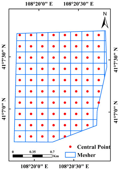 Monitoring points were arranged in accordance with a 200 × 200 m grid in the test area, and 52 soil-water- and -salt-sampling points were slightly adjusted for the special terrain and features (Figure 1). Sampling began in April 2022, when the maize and sunflowers were at the seedling stage. The field coordinates were determined using a handheld global positioning system, and the sampling depth ranged from the surface to a depth of 100 cm. The total sampling depth was divided into six layers (0–10, 10–20, 20–40, 40–60, 60–80, and 80–100 cm), and the excavated samples were collected by layer with a soil drill (stainless steel 1 m) and placed in sealed bags.