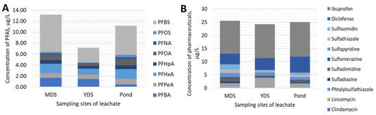 - Masoner, J.R.; Kolpin, D.W.; Furlong, E.T.; Cozzarelli, I.M.; Gray, J.L. Landfill Leachate as a Mirror of Today’s Disposable Society: Pharmaceuticals and Other Contaminants of Emerging Concern in Final Leachate from Landfills in the Conterminous United States. Environ. Toxicol. Chem. 2016, 35, 906–918. [Google Scholar] [CrossRef]