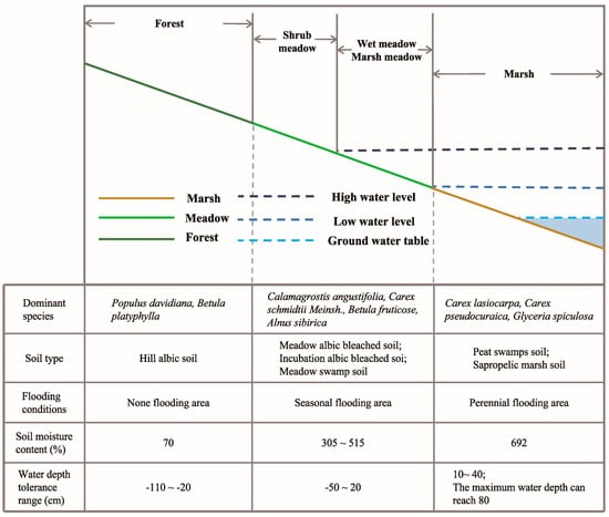 - Yan, D.D.; Luan, Z.Q.; Xu, D.D.; Xue, Y.Y.; Shi, D. Modeling the Spatial Distribution of Three Typical Dominant Wetland Vegetation Species’ Response to the Hydrological Gradient in a Ramsar Wetland, Honghe National Nature Reserve, Northeast China. Water 2020, 12, 2041. [Google Scholar] [CrossRef]