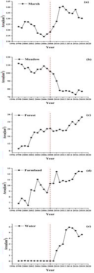 - Liu, J.P.; Du, B.J.; Sheng, L.X.; Tian, X.Z. Dynamic Patterns of Change in Marshes in the Sanjiang Plain and Their Influential Factors. Adv. Water Sci. 2017, 28, 22–31. [Google Scholar] [CrossRef]