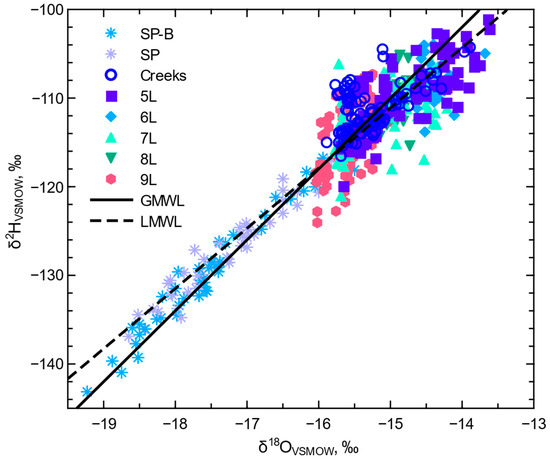 - Craig, H. Isotopic Variations in Meteoric Waters. Science 1961, 133, 1702–1703. [Google Scholar] [CrossRef] [PubMed]