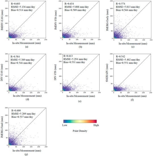 3.1. Overall Performance of the Improved Double Instrumental Variable Method-Based Precipitation Fusion