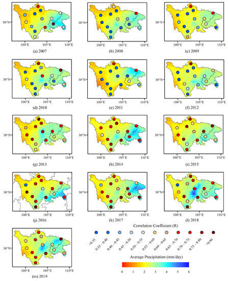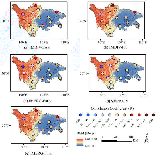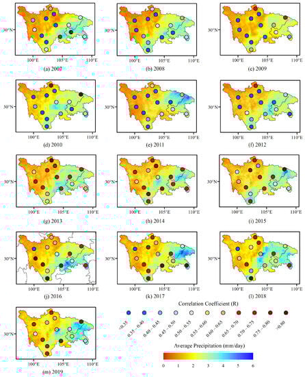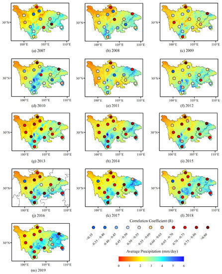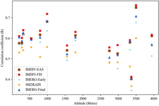 4.1. The Correlation Coefficients of Fused and Orginal Products for Gauge Stations with Different Altitudes