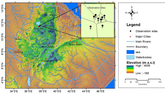 - Belete, B.; Melesse, A.M.; Seleshi, Y. GIS-based hydrological zones and soil geo-database of Ethiopia. Catena 2013, 104, 21–31. [Google Scholar]