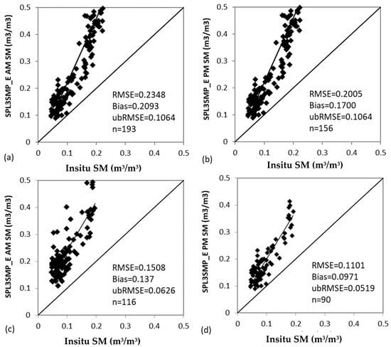 - Colliander, A.; Jackson, T.J.; Bindlish, R.; Chan, S.; Das, N.; Kim, S.B.; Cosh, M.H.; Dunbar, R.S.; Dang, L.; Pashaian, L.; et al. Validation of SMAP surface soil moisture products with core validation sites. Remote Sens. Environ. 2017, 191, 215–231. [Google Scholar] [CrossRef]