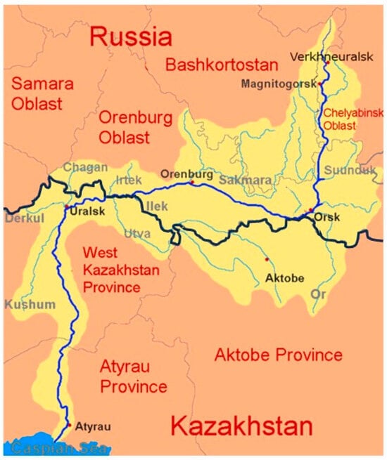 - A Disappearing River: The Fate of the Ural. Available online: www.novostan.org/en/Kazakhstan/disappearing-river-can-the-ural-fate-be-averted/ (accessed on 20 July 2023).