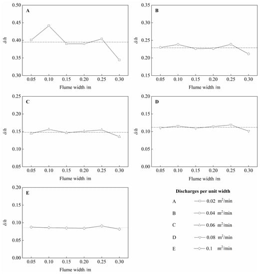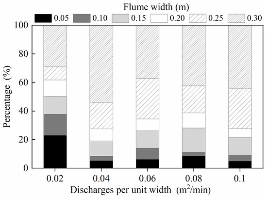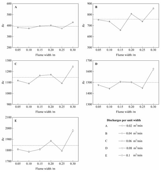 | Discharge per Unit Width (×10−4 m2 s−1) | Flume Width (m) | |||||