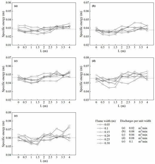 3.3. The Specific Energy under Different Widths
