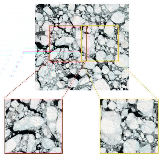 The detection on a local scale does not fully meet the requirements of navigating in polar regions, and using a single data source has certain limitations. The ship optical cameras cannot obtain large-scale and long-time series images and cannot monitor non-navigable areas. If sea ice in remote sensing images can be identified and located, and data fusion between local-scale and large-scale data can be performed, the advantages of different data sources can be fully utilized [23].